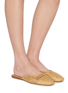 Embrace effortless summer sophistication with these slide mules, featuring intricate woven craftsmanship that creates beautiful textural dimension. The closed-toe silhouette offers refined coverage while the backless design ensures easy, slip-on convenience for warm-weather days and relaxed elegance.